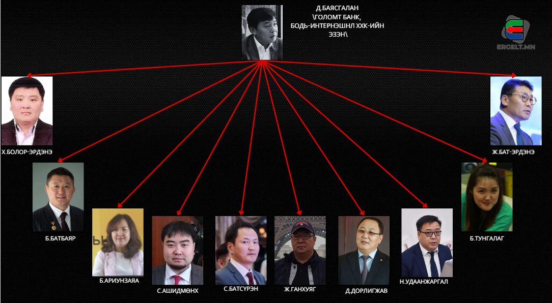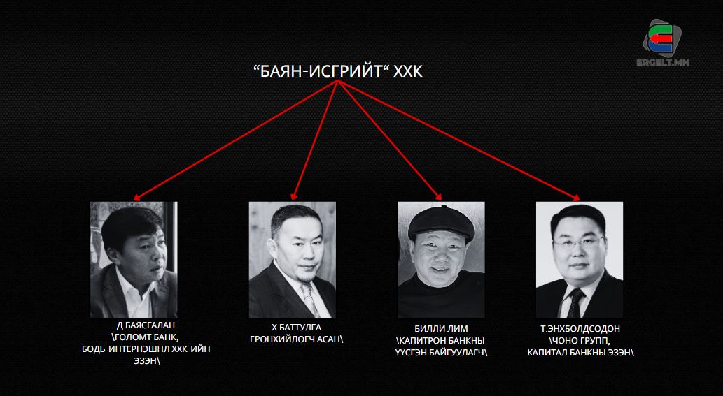 Тодруулбал, “Баян-Исгрийт” ХХК-ийг 2010 оны наймдугаар сарын 3-нд “Голомт”-ын Д.Баясгалан, Ерөнхийлөгч асан Х.Баттулга, “Чоно групп”-ийн эзэн Т.Энхболдсодон, Сингапур Улсын иргэн Билли Лим Син Пау нар хамтран үүсгэн байгуулсан. Энэ бол Ерөнхийлөгч асан Х.Баттулга, “Голомт”-ын эзэн Д.Баясгалан нар нэгдмэл ашиг сонирхолтой хамтрагчид гэдгийг батлах баримт гэсэн үг. Харин нөгөө хоёр хамтрагчийнх нь тухайд, Сингапурын иргэн Билли Лим Син Пау гэгч нь монголчуудад Х.Баттулгын найз гэдгээрээ эчнээ танил болсон. Х.Баттулгатай “Баянгол” зочид буудлыг хамтран эзэмшдэг, Х.Баттулгатай хамтарч Чингис хааны морьт хөшөөг босгосон нэгэн. Мөн “Капитрон” банкны үүсгэн байгуулагч бөгөөд хожим “Ажнай” Д.Бат-Эрдэнэд шилжүүлсэн байдаг. “Чоно групп”-ийн эзэн Т.Энхболдсодонгийн хувьд, УИХ-ын гишүүн асан Б.Ундармаатай “Капитал” банкийг хамтран эзэмшиж ирсэн. Мөн УИХ-ын гишүүн, ЗТХ-ийн сайд асан Б.Энх-Амгалантай “Мишээл групп”-ийг хамтран эзэмшдэг. Цаашилбал, Төв талбайн урд талын “Blue sky” барилгыг эзэмшдэг нэгэн.