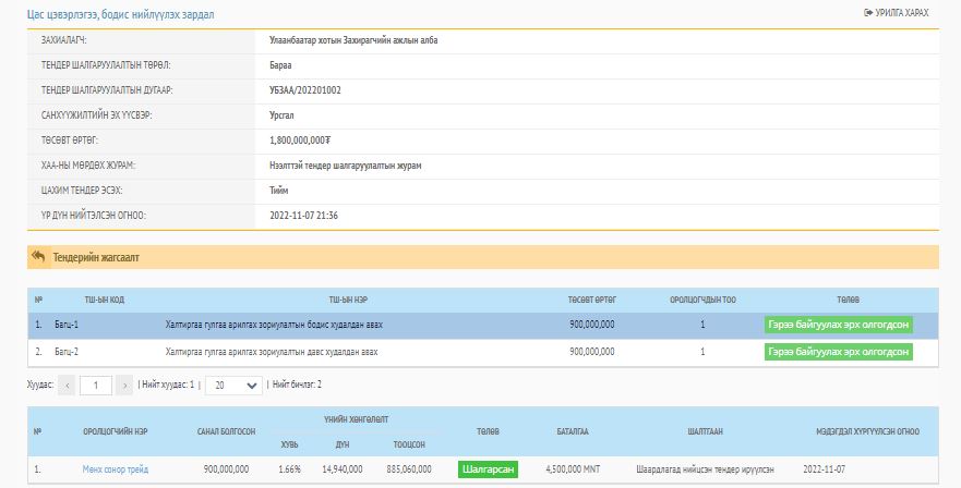 222233УИХ-ЫН ГИШҮҮН Ж.ЗОЛЖАРГАЛ АХДАА ТЕНДЕР ОЛЖ ӨГДӨГ ИНЖЕНЕР ҮҮ