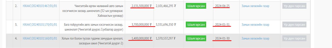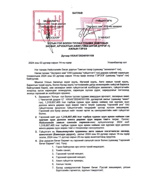 | НИЙСЛЭЛИЙН ЗАМ ЗАСВАР, БОРДЮР, ДАВС БОДИСНЫ ТЕНДЕРҮҮД НЭГ ГЭР БҮЛИЙН МЭДЛИЙНХ БОЛЖЭЭ, ХОТЫН ДАРГА АА |