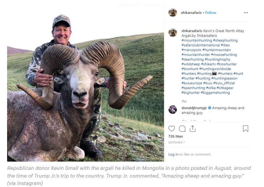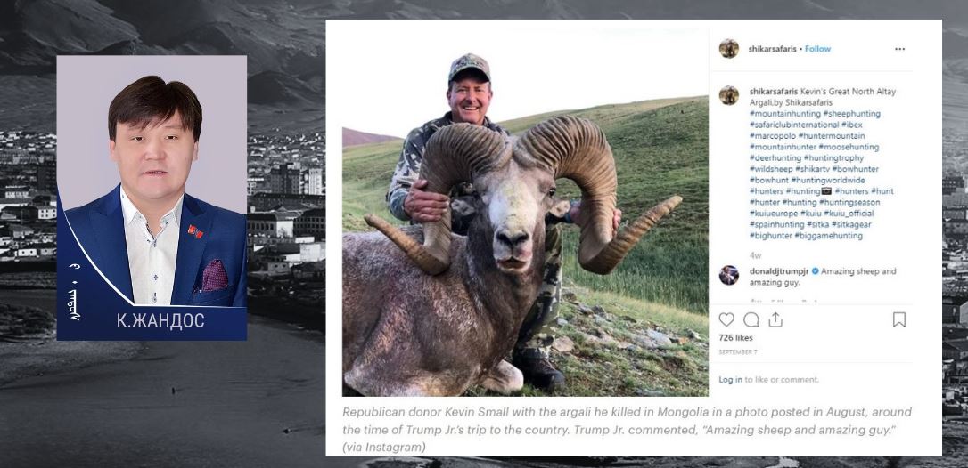 Тайлбар: Доналд Трампын хүү болон К.Жандос нарын агнасан гэх аргалийн зураг