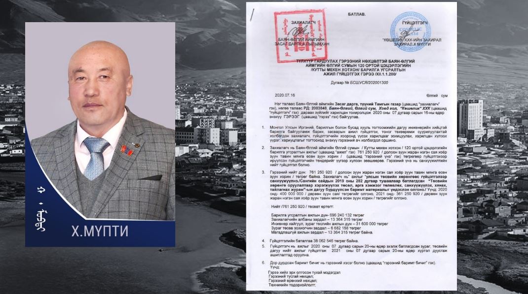 Баян-Өлгий аймгийн ИТХ-ын төлөөлөгч Х.Мүпти нь “Көшелик” ХХК-ийг эзэмшдэг. Харин “Көшелик” ХХК нь Баян-Өлгий аймгийн сургууль, цэцэрлэгийн тендерүүдийн талыг авдаг. Харин үлдсэн талыг нь төлөөлөгч Х.Нурболатын “Мурап” ХХК авдаг ажээ.