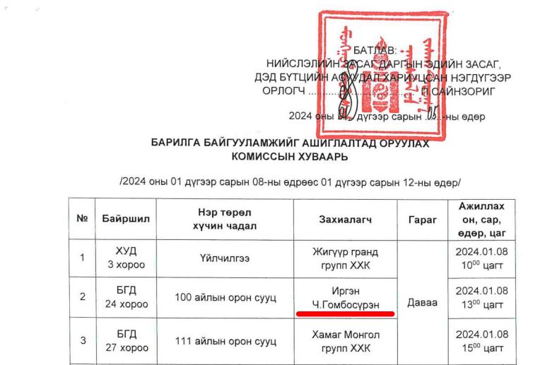 Тайлбар: ХУД-ийн ИТХ-ын дарга Г.Батсайханы "Бумба гранд" хотхон