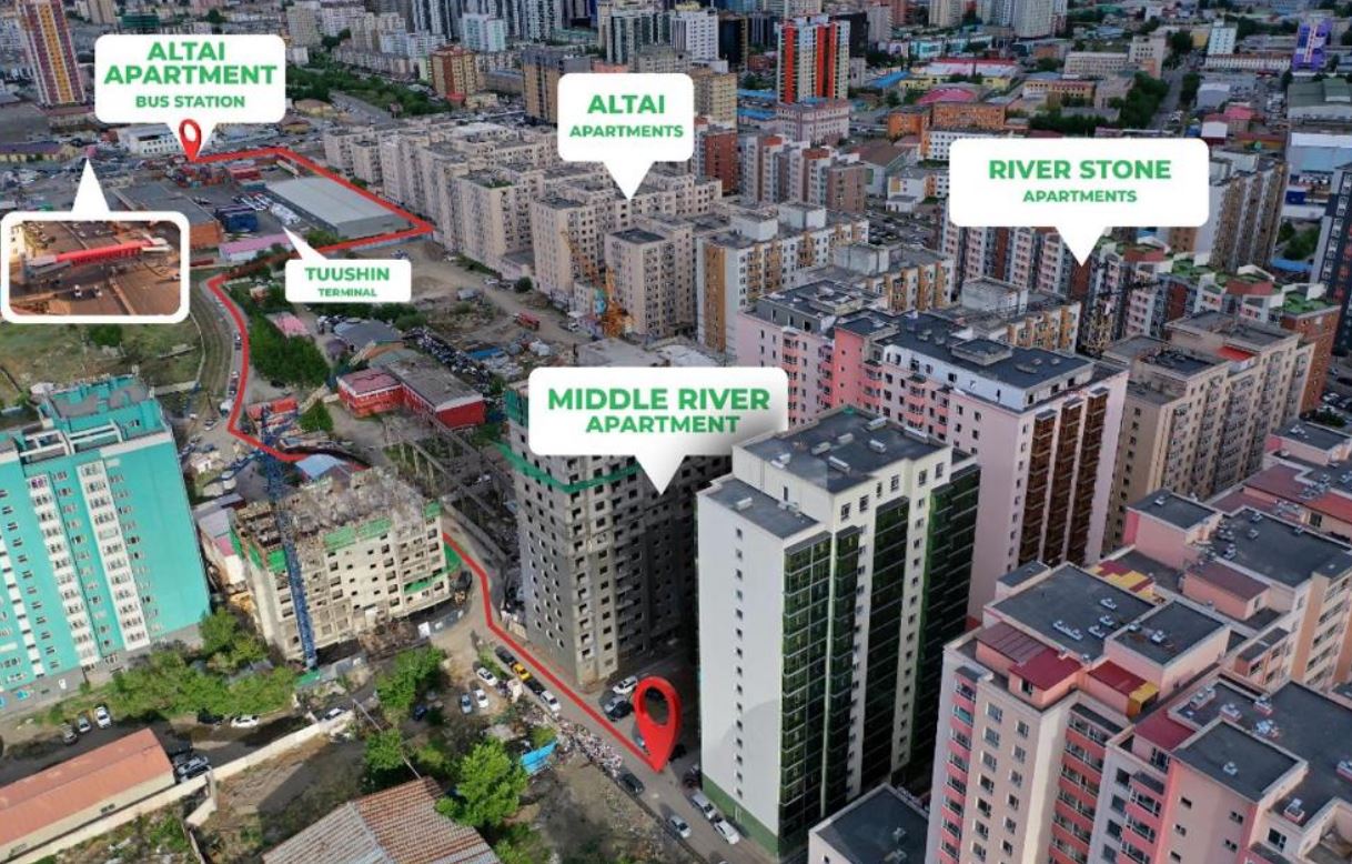 Гэтэл ХУД-ийн ИТХ-ын дарга Г.Батсайхан төрсөн ах Г.Энхтүвшинтэйгээ хамтран эзэмшдэг “Бумба гранд констракшн” ХХК-аараа яг энэ түгжрэлийн төв цэгт буюу “Алтай” хотхоны хойно, хашаанд нь тулган 240 айлын хоёр блок, 16 давхар “Middle river” гэх хотхон барьж буй ажээ. Эхний ээлжийн 120 айлын “А” блок орон сууцаа энэ оны нэгдүгээр сард ашиглалтад оруулсан. Дараагийн ээлжийн 120 айлын “Б” блок нь одоо ашиглалтад орж буй ажээ.