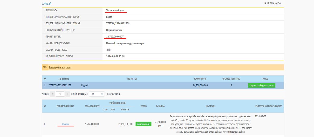 222233УИХ-ЫН ГИШҮҮН Ж.ЗОЛЖАРГАЛ АХДАА ТЕНДЕР ОЛЖ ӨГДӨГ ИНЖЕНЕР ҮҮ