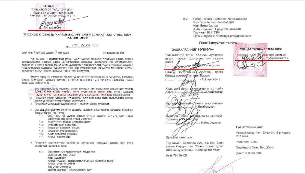 Тэгэхээр 2024 оны эхний зургаан сард 901 сая төгрөг, зургадугаар сард гэрээ байгуулснаас хойш одоог хүртэл 715 сая төгрөг, нийт 1.6 тэрбум төгрөгийг “Тавантолгой түлш” ХХК-аас “Хос богд” ХХК-ийн данс руу шилжүүлээд байна. Зургадугаар сард 2.2 тэрбум төгрөгийн гэрээ байгуулснаас хойш 715 сая төгрөг шилжүүлсэн гэхээр дахиад 1.4 тэрбум төгрөг шилжүүлэх дутуу байгаа гэсэн үг. Тэгэхээр "Тавантолгой түлш" ХХК-аас ирэх онд ч "Хос богд" ХХК руу гүйлгээ хийсээр байх болно гэсэн үг.
