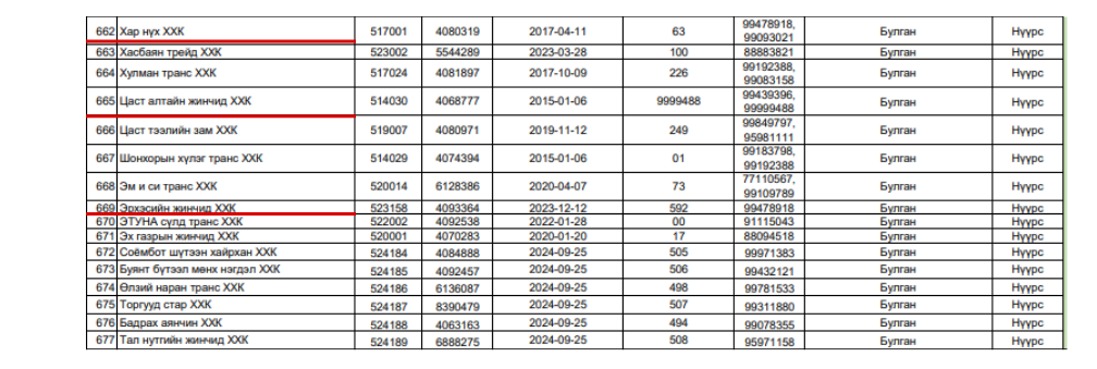 ХОВДЫН ЕРӨНИЙ ПРОКУРОР АСНЫ ЭХНЭР, ЭРҮҮГИЙН ХЭРГИЙН ШҮҮГЧ АСНЫ БЭР, ХУРАНДААГИЙН ХАДАМ ДҮҮ, ТАМГЫН ГАЗРЫН ДАРГЫН ЭГЧ, МЯНГАН УГАЛЗАТЫН НУРУУНЫ ХАМГААЛАЛТЫН ЗАХИРГААНЫ ДАРГА АСНЫ ОХИН, “МОЭНКО” ХХК-ИЙН “ХАМГААЛАГЧ” Х.НАРАНЦЭЦЭГ