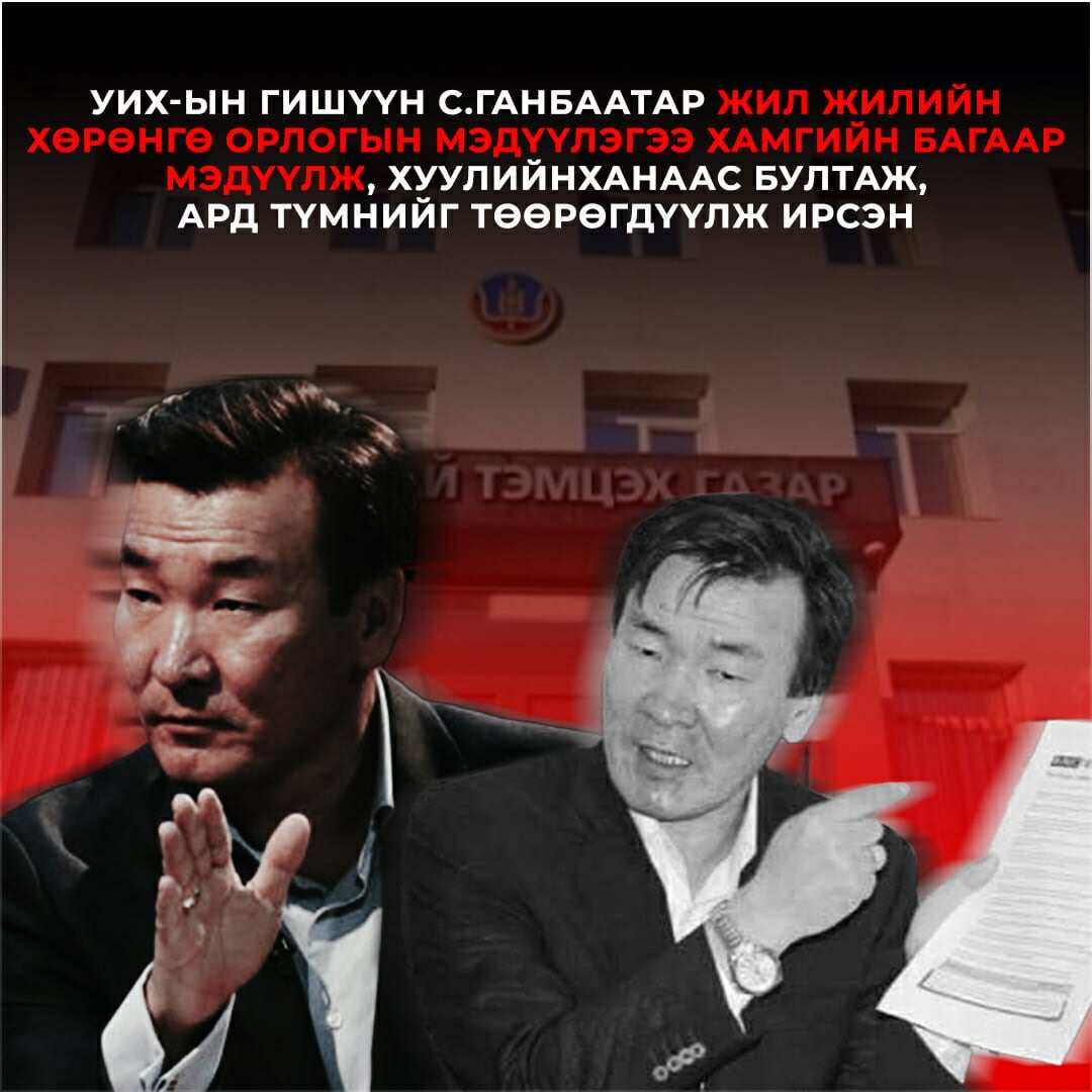 | УИХ-ЫН ГИШҮҮН С.ГАНБААТАРЫН НУУСАН 29 КОМПАНИЙГ ИЛРҮҮЛЖ, МҮЭХ-НЫ ГАЗРЫГ ЗАРЖ ХӨЛЖСӨН НОЦТОЙ БАРИМТЫГ ШАЛГАЖ БАЙНА |