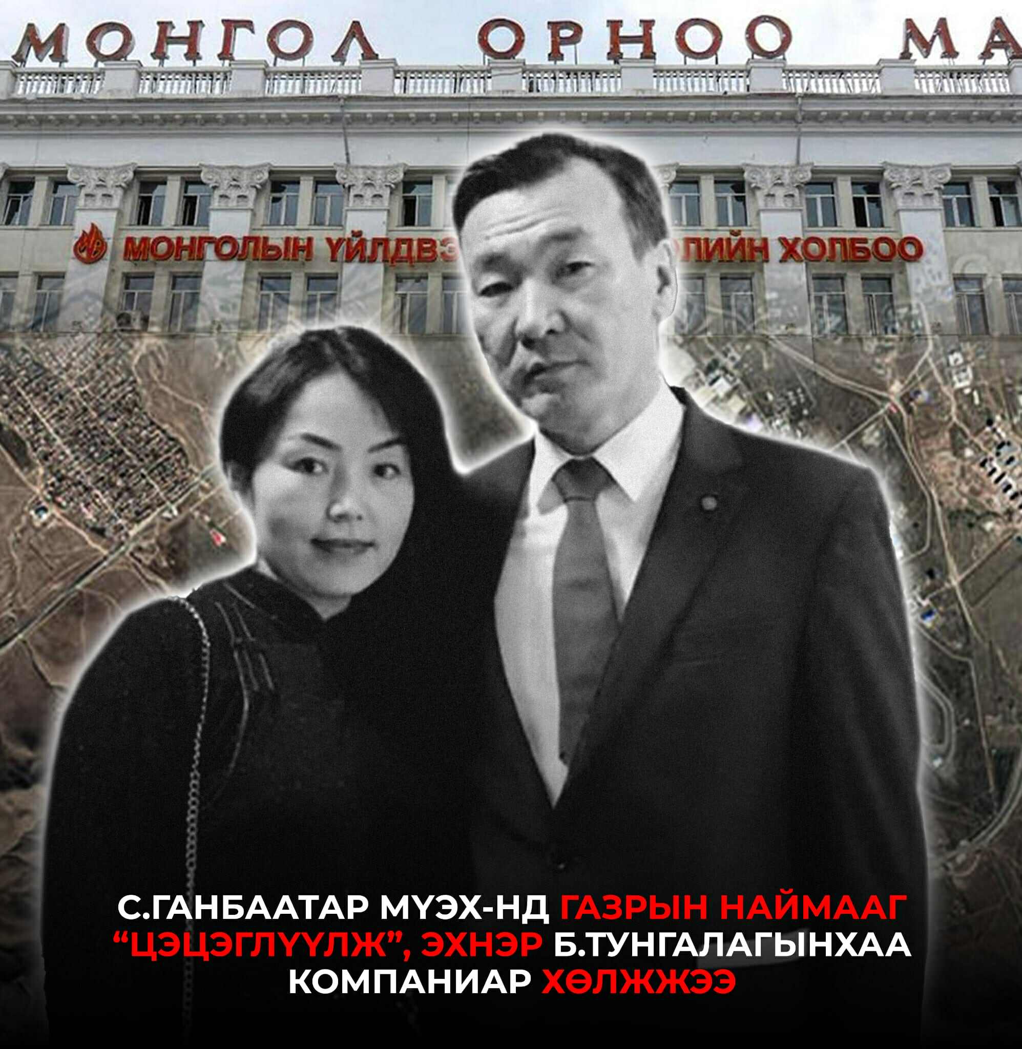 С.Ганбаатарын хувьд хөрөнгө орлогын мэдүүлэгтээ хоёрхон компанитай гэж мэдүүлсэн байдаг. Гэвч эхнэр Б.Тунгалагийнхаа нэр дээр үйл ажиллагаа явуулдаг 29 орчим компани, ТББ бүртгүүлжээ. Тухайлбал, аялал жуулчлалын чиглэлээр 2005 онд байгуулсан “Андискауред Монголиа” ХХК-ийг эхнэр Б.Тунгалагтайгаа хамтран эзэмшдэг ч, хөрөнгө орлогодоо мэдүүлээгүй байх жишээтэй. Цаашлаад гадаад худалдаа, бизнесийн зөвөлгөө өгөх чиглэлээр байгуулсан “Дархан ургах наран зүг” ХХК, аялал жуулчлалын чиглэлээр үйл ажиллагаа явуулдаг “Альпс ПНҮ”, “Ворлд плас файв”, “Монгол малын бэлчээрийн менежмент” ХХК, “Боорчи баатар” ХХК, “Адвант трейд” ХХК зэрэг компаниа эхнэр Б.Тунгалагийнхаа нэрээр удирддаг байна. Гэвч эхнэрийнхээ нэр дээрх бүртгэлтэй 20 гаруй компани, ТББ-ын алийг нь ч тэр хөрөнгө орлоготоо дурдаагүй бөгөөд хөрөнгөө нуун дарагдуулсан ноцтой баримтын сэжүүр эндээс олджээ. Одоогийн байдлаар хууль хяналтын байгууллагаас С.Ганбаатар, Б.Тунгалаг нар дээр нэр дурдагдсан 29 компани, аж ахуйн нэгжид хэрхэн оролцоотой ажиллаж, амьдрач байсныг нь дэлгэрүүлэн шалгаж байгаа ажээ.