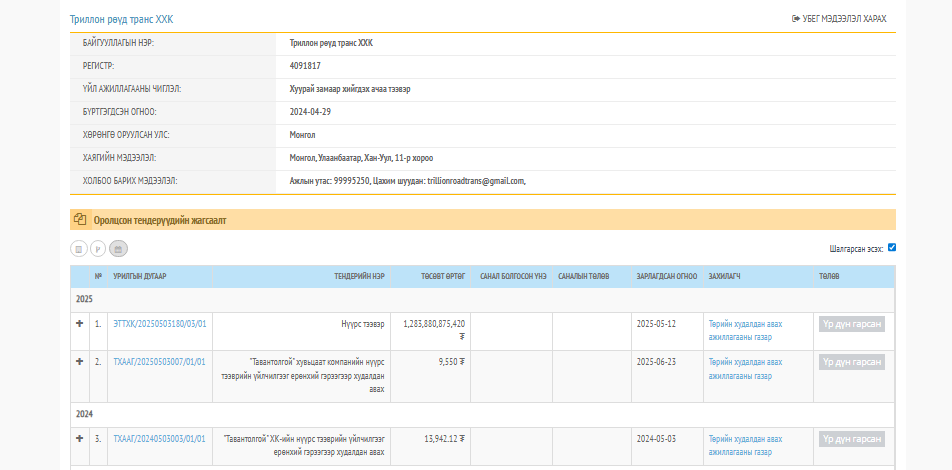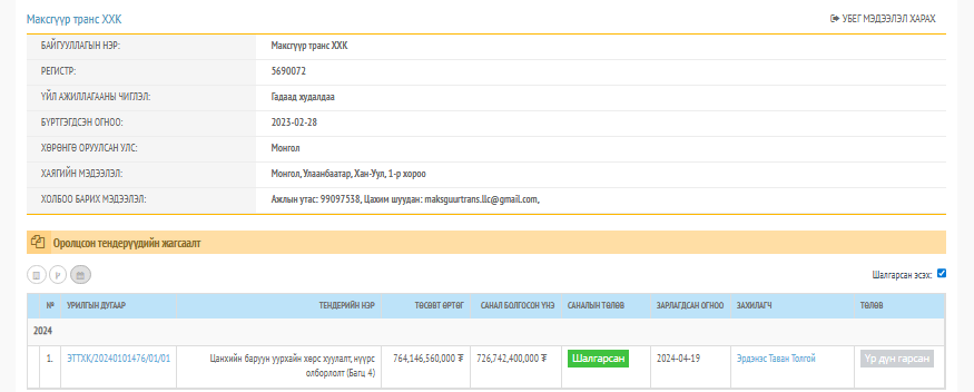 222233УИХ-ЫН ГИШҮҮН Ж.ЗОЛЖАРГАЛ АХДАА ТЕНДЕР ОЛЖ ӨГДӨГ ИНЖЕНЕР ҮҮ