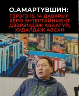 | “ГЭРЭГЭ ТАУЭР”-ЫН 14 ДҮГЭЭР ДАВХАРТ Д.ХИШИГБАЯР, Т.ДҮҮРЭН НАР ЭЗЭН СУУСАН Ч “ХЕРО” Б.БААТАР МӨНГӨӨ ШИЛЖҮҮЛСЭН НЬ ТОГТООГДЖЭЭ |