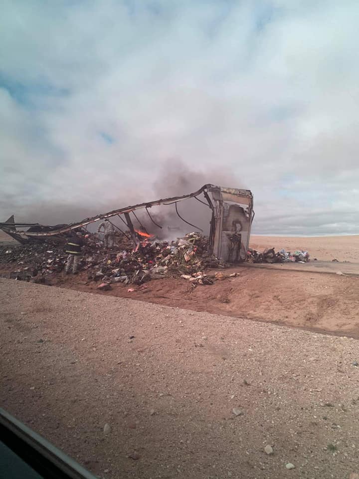 Дорноговь аймгийн Сайншанд сумын дөрөвдүгээр багийн авто замын зорчих хэсэгт “Волва” маркын том оврын ачааны машин шатсан харамсалтай хэрэг гарсан. Тус машинд нийт 26 тонн карго ачаа байжээ. Энэ ослын талаар шатсан автомашины жолооч Б.Энхтүвшинээс тодрууллаа.