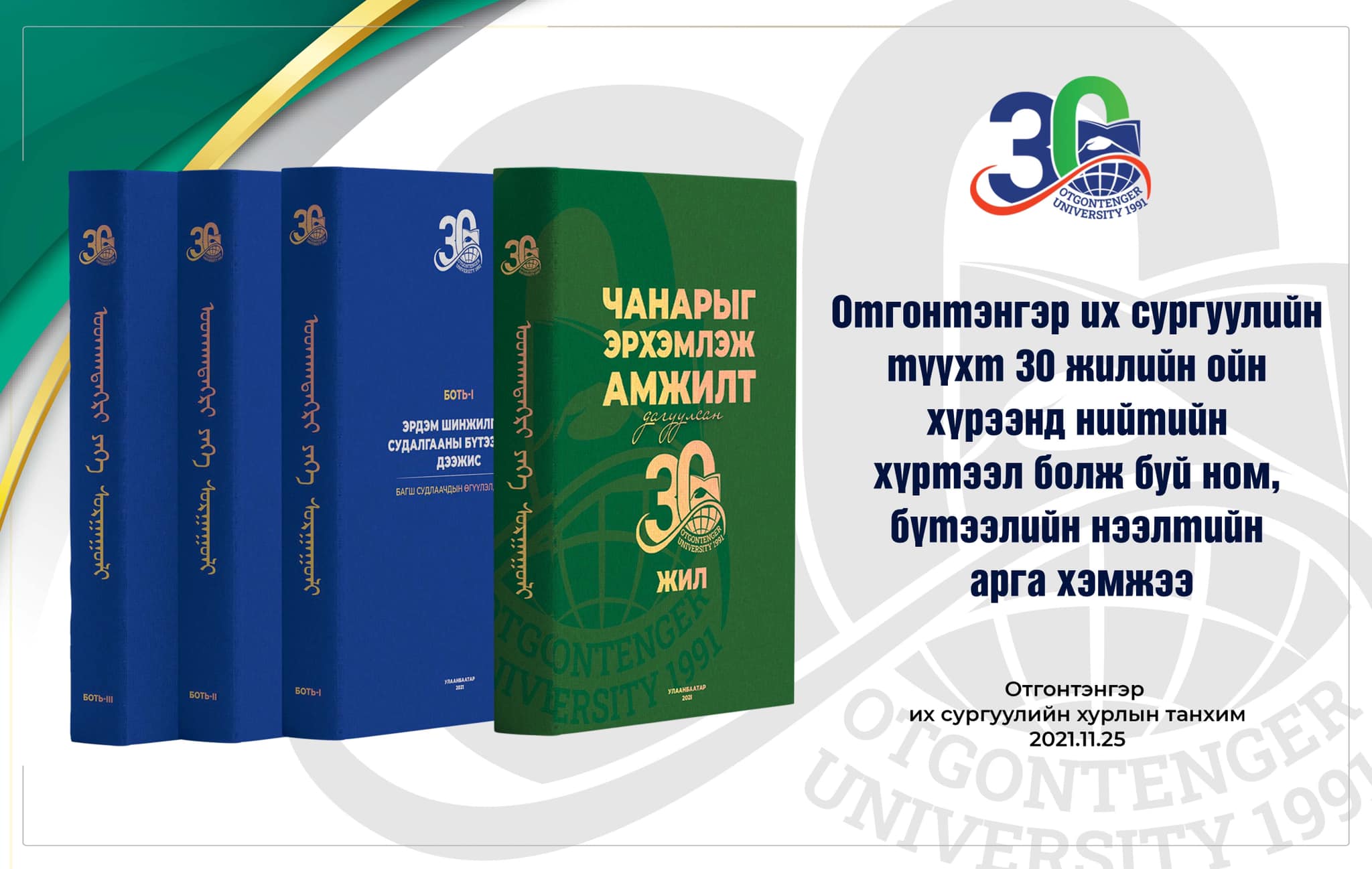 | Отгонтэнгэр их сургууль 30 жилийн ойн хүрээнд нийтийн хүртээл болгож буй ном бүтээлээ танилцууллаа |