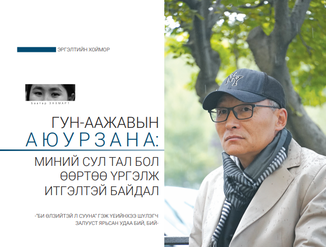 "Эргэлт" сэтгүүл "Хоймор"-тоо Соёлын гавьяат зүтгэл, Монголын өнөө цагийн залуусын оюун санааны түүчээ болж яваа зохиолч Гун-Аажавын Аюурзанатай ярилцсан билээ.