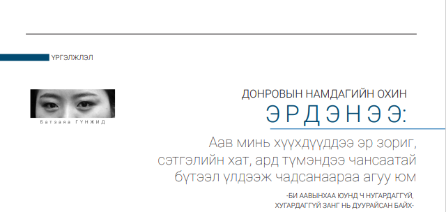 ДОНРОВЫН НАМДАГИЙН ОХИН ЭРДЭНЭЭ: ААВ МИНЬ ҮР ХҮҮХДҮҮДДЭЭ ЭР ЗОРИГ, СЭТГЭЛИЙН ХАТ, АРД ТҮМЭНДЭЭ ЧАНСААТАЙ БҮТЭЭЛ ҮЛДЭЭЖ ЧАДСАНААРАА АГУУ ЮМ
