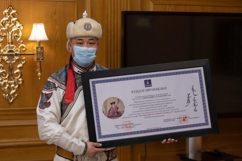 | Туульч А.Балдандоржид Соёлын биет бус өвийн Шилдэг өвлөн уламжлагч батламж гардууллаа |