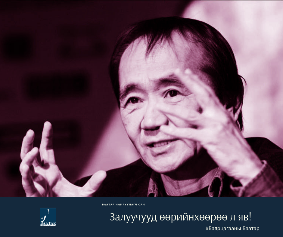 “Баярцагааны Баатар яах вэ. Нэг л өдөр орчлонгийн жамаар эндээс яваад өгнө. Та нар л надаас авах зүйлээ ав” гээд гуйж ч байгаа юм шиг, гэдийж ч юм шиг яриаг нь уран бүтээлчид нь эрхэлж нэг, загнуулж нэг сонссон сон. Нээрээ л түүнээс ихийг авч дээ, бид. Улсын драмын эрдмийн театрын тайзан дээр тэр хамаг л авьяас билиг, оюун бодлоо шавхаж өгчихөөд явж.