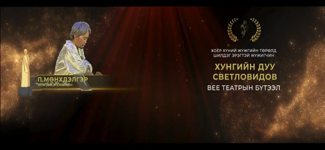 Олон улсын "ГЭГЭЭН МУЗА 17" наадмын хоёр хүний жүжгийн төрөл шилдэг эрэгтэй жүжигчнээр "Bee" театрын уран бүтээл "Хунгийн дуу светловидов" жүжгээр П. Мөнхдэлгэр шалгарлаа.
