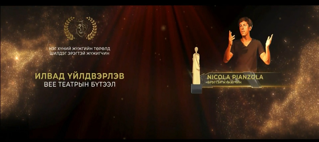 Олон улсын "ГЭГЭЭН МУЗА 17" наадмын нэг хүний жүжгийн төрөл шилдэг эрэгтэй жүжигчин төрөлд "Bee" театрын бүтээл "Илвад үйлдвэрлэв" жүжгээр Итали Улсын жүжигчин Nicola Planzola шалгарлаа.