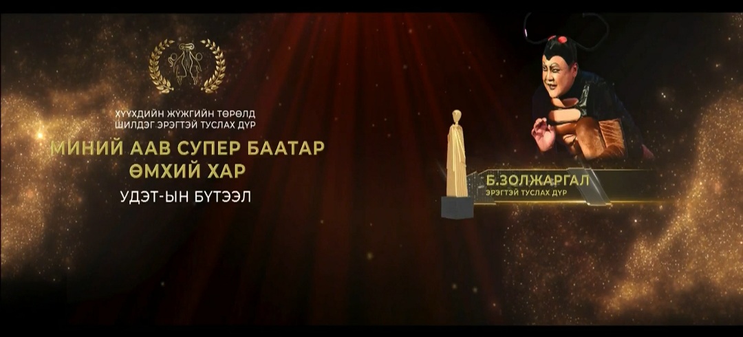Олон улсын "ГЭГЭЭН МУЗА 17" наадмын хүүхдийн жүжгийн төрлийн шилдэг эрэгтэй туслах дүрийн шагналыг жүжигчин Б.Золжаргал УДЭТ-ын "Миний аав супер баатар" жүжгээр авлаа