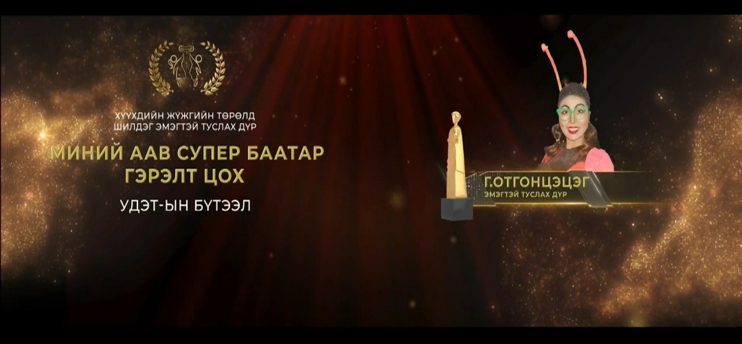 Олон улсын "ГЭГЭЭН МУЗА 17" наадмын хүүхдийн жүжгийн төрлийн шилдэг эмэгтэй туслах дүрийн шагналыг жүжигчин Г. Отгонцэцэг "Миний аав супер баатар" жүжгийн дүрээр хүртлээ