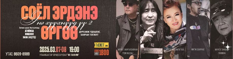 Домогт "Соёл эрдэнэ – Өргөө" хамтлагуудын нэгдэл МУГЖ Г.Жаргалсайхан \Том Жагаа\, МУГЖ С.Бархас, МУГЖ Ч.Насантогтох, МУУГЗ И.Болоож, МУУГЗ Г.Энхбаяр нарын зохиол бүтээлүүд, алтан үеийн хитүүд нэг дор эгшиглэнэ. Тоглолтод дуучин Агиймаа, Мишээл, Заяа\Андууд хамтлаг\ зэрэг уран бүтээлчид оролцоно.