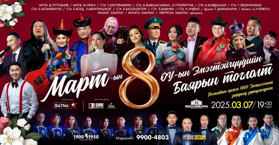 Хэзээ: 2025 оны гуравдугаар сарын 08-нд 19:30 цагаас