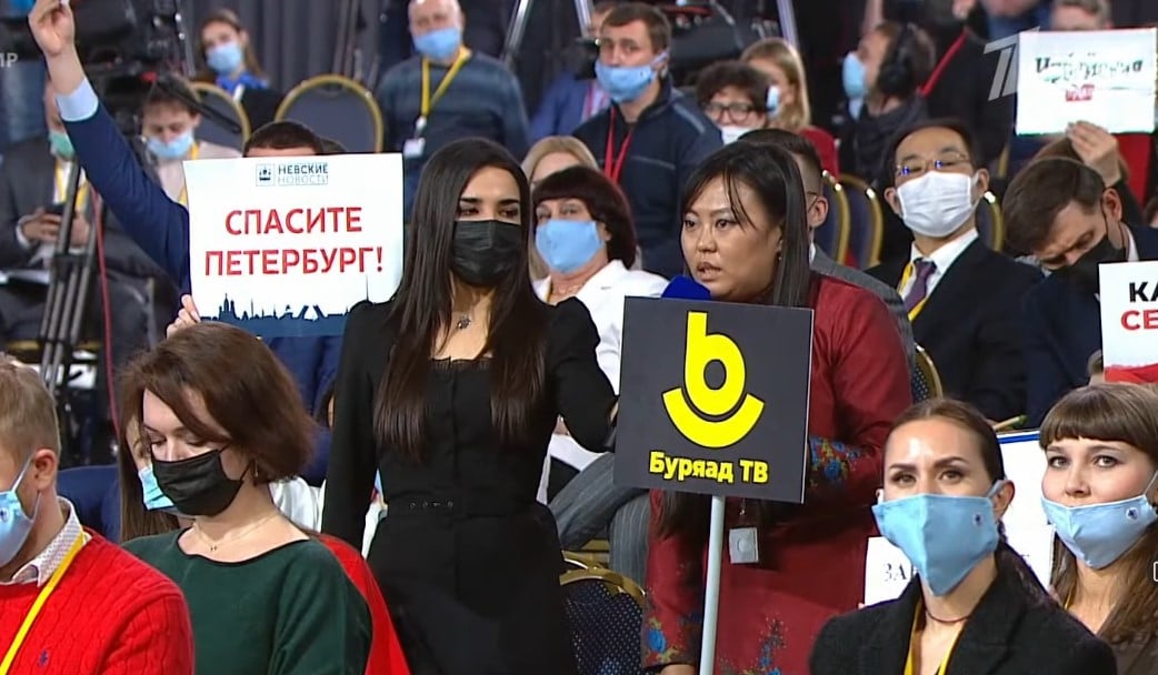 Сэтгүүлч Баярма Раднаева ОХУ-ын Ерөнхийлөгч Владимир Путинээс “Улаан-Үд хотын ДЦС-д гал гарч, -30 хэмийн хүйтэн 45 орон сууц халаалтгүй болж, 1300 гаруй орон сууцны халуун ус тасарсан. Хэрэг уг асуудалд холбооноос тусламж үзүүлэхгүй бол Буриад тусгаар улс болно гэсэн асуудал яригдаж байна. Мөн Байгаль нуурыг улсын статустай болгож, холбоо бүрэн мэдэлдээ авч байгаа гэсэн үнэн үү” гэж асуужээ.