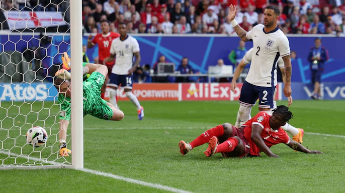 Шөвгийн наймын тоглолтуудын хоёр дахь өдрийн эхний тоглолт Англи, Швейцарын шигшээ багийн хооронд болов. Тухайлбал, спортын аналистуудын дунд “таамаглашгүй” гэгдэж байсан аль нь ч ялалт байгуулж болох хоёр багийн тоглолт мөн адил үндсэн цагт тэнцэж, торгуулийн цохилтоор шийдэгдсэн.