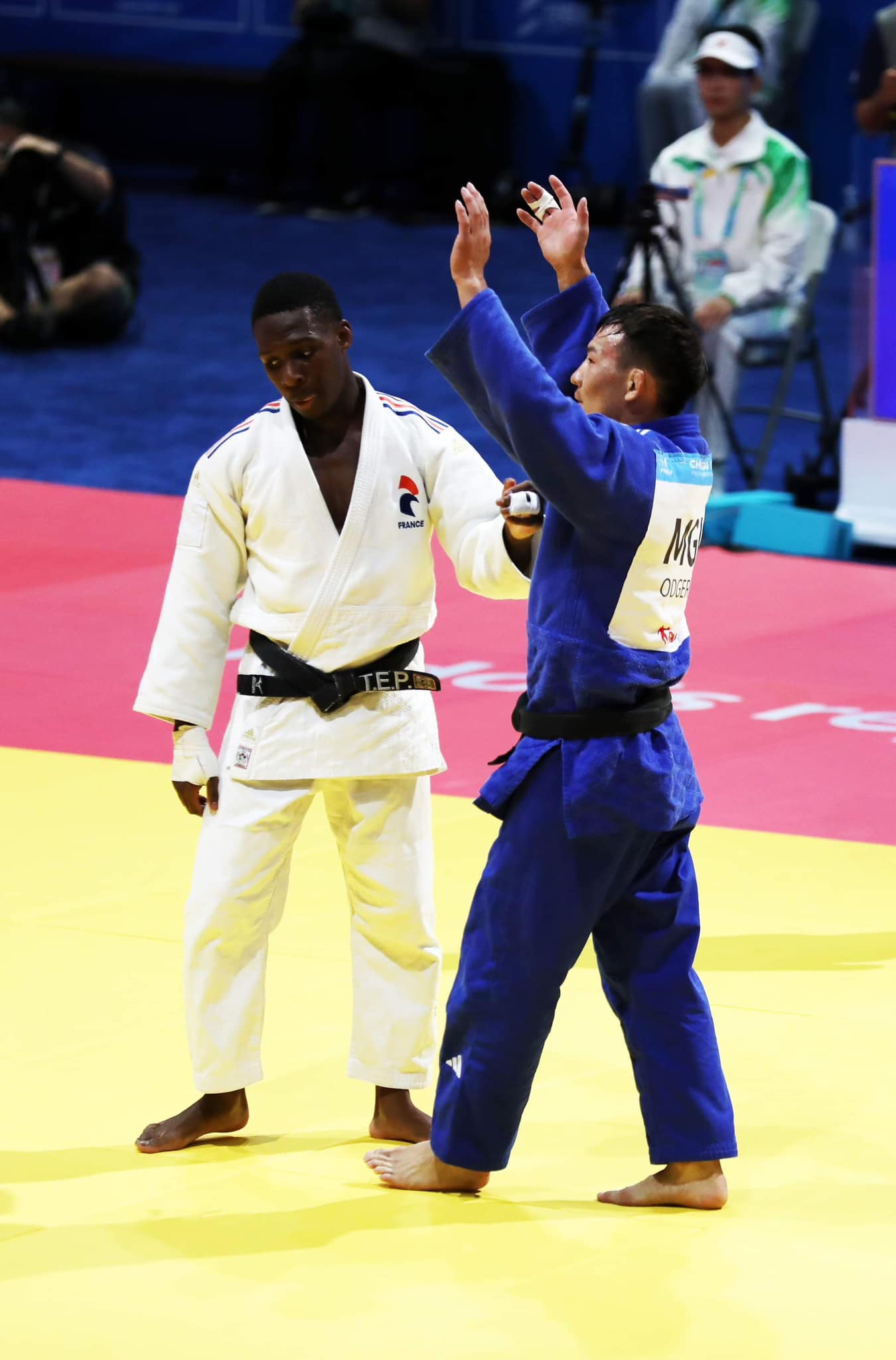 -Францын бөхийн хоёр ханцуйны барьцан дээрээс суганд шижэх мэхээр вазари үнэлгээ аваад, цагийн төгсгөлд даралтаар цэвэр хожсон.