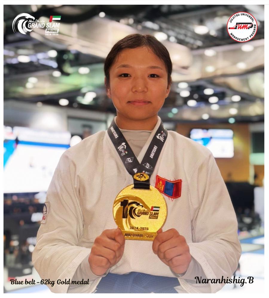 –АНЭУ-ын Абу Даби хотод болсон жюү жицүгийн “Гранд слам” тэмцээний цэнхэр бүсний ангиллын 62 кг-ын жинд алтан медаль хүртсэнд баяр хүргэе.