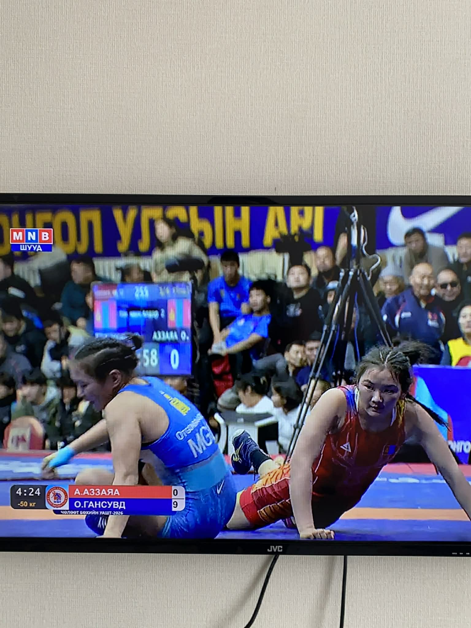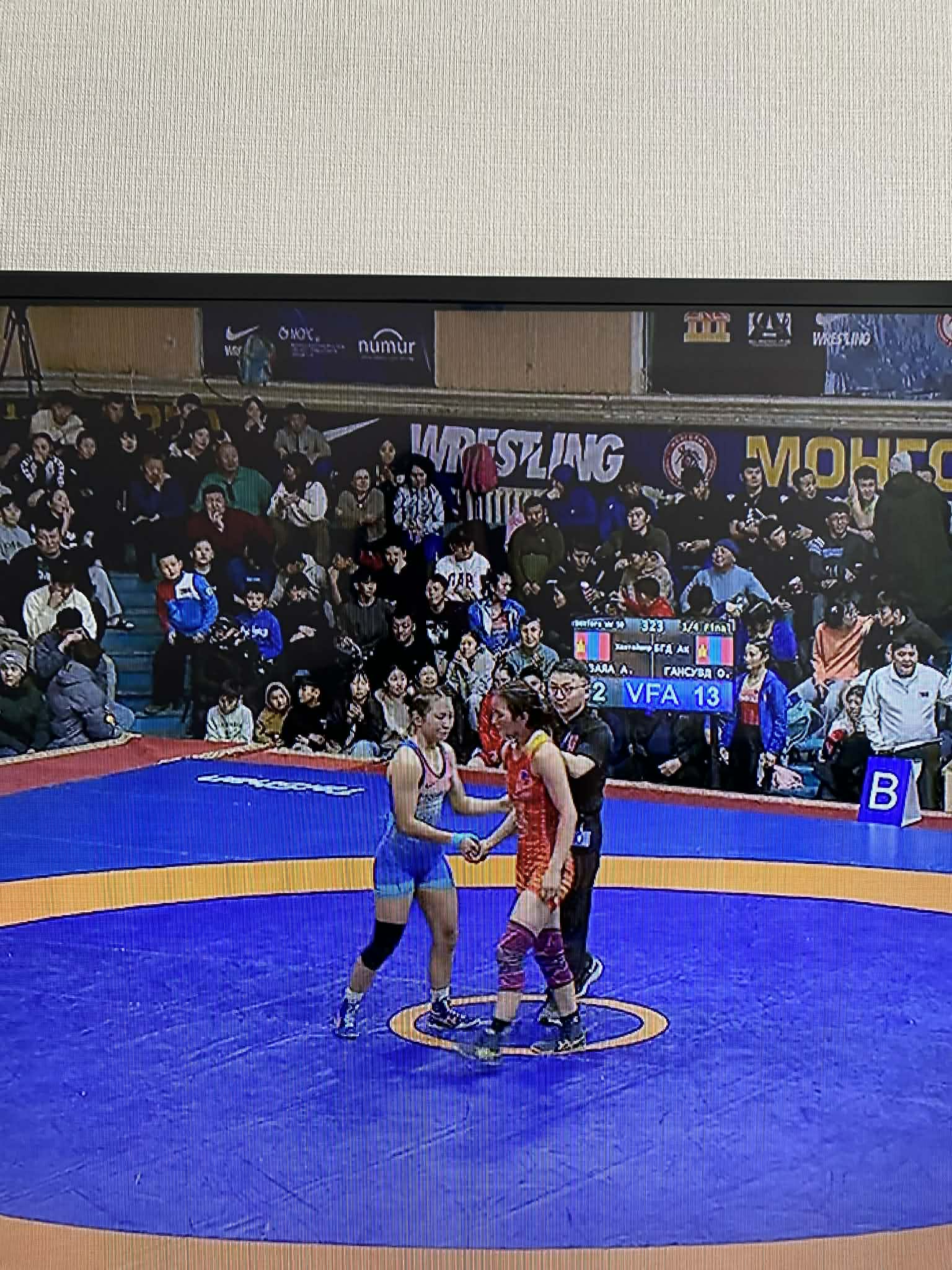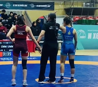 -“Хантайшир” дэвжээний тамирчин Б.Сувд-Эрдэнэ эгчтэй хийсэн медалийн төлөөх барилдаан хамгийн чанга нь байсан. УАШТ-ий медаль төлөөх барилдаан болохоор аргагүй байх. Ялагдсан нь медальгүй хоцрох, ялсан нь УАШТ-ээс медаль хүртэх хариуцлагатай барилдаан байлаа.
