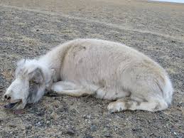 Ташуурдах жавраас нөмөрлөх нь битгий хэл өчүүхэн ч нэмэр болохооргүй сэрийсэн давжаа загийн хажууд үргэж одох нь битгий хэл өндийх ч тэнхэлгүй янзага аахилан хэвтэж байв. Дэргэд нь очсон биднээс цочдосхийснээ толгойгоо өргөж үл дийлэн тийчлэх янзаганы хоёр нүднээс урссан нулимс, нуух дарайн хөлдөж, хойд хөл, цавь нь тэр чигтээ хар ногоон чацгаар будагдсан нь мялзан төст өвчинд дийлдэж буйг нь илтгэнэ
