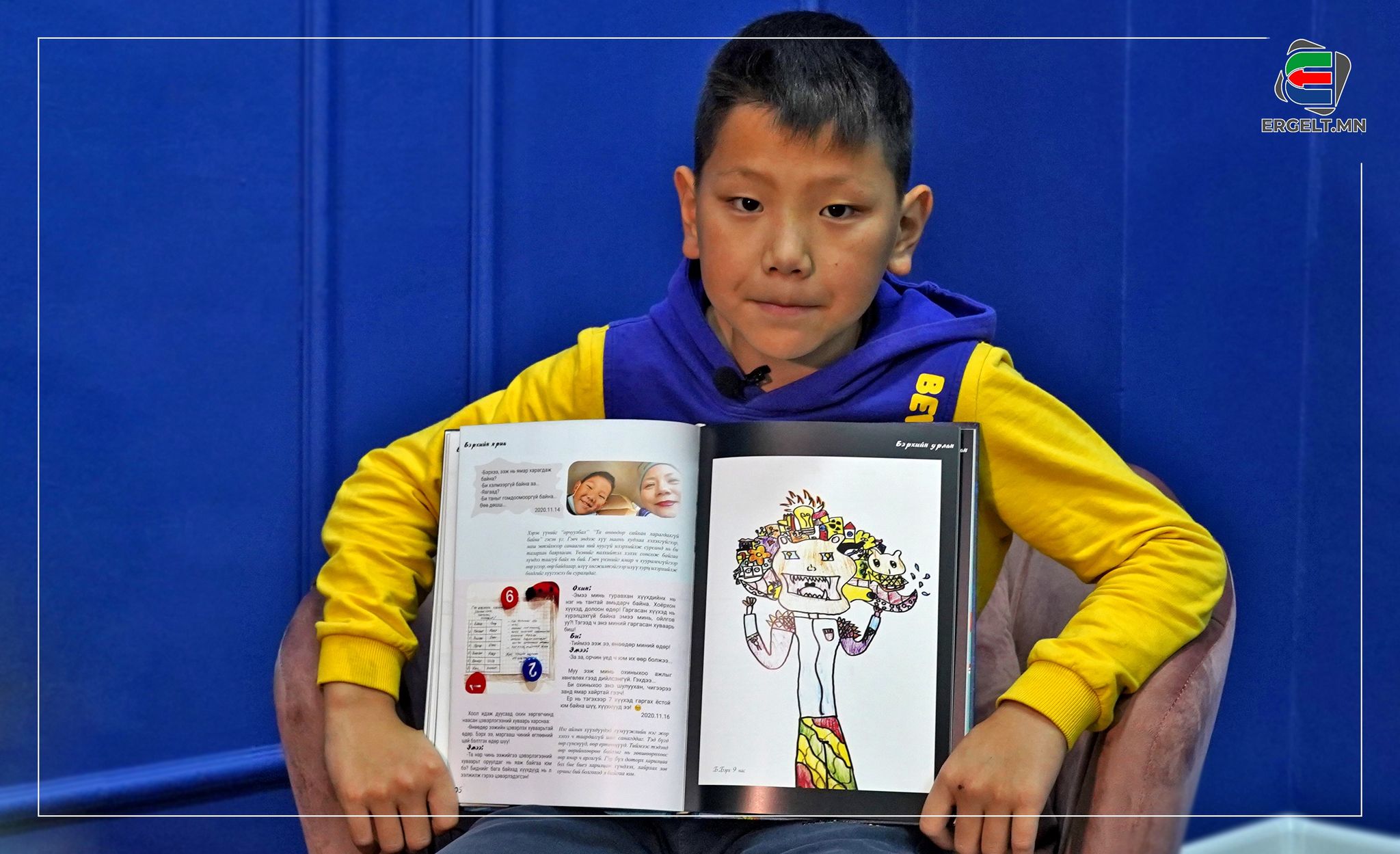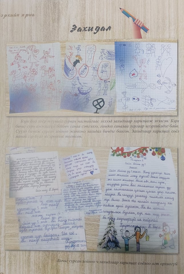 -Одоо бараг ойлгохгүй байх. Тухайн үед гомдсон юм уу, гунигтай үедээ зүрхээ доош нь харуулж зурдаг байсныг тод санаж байна. Тэгээд ээжтэйгээ тэвэрмээр байна, үнсүүлмээр байна гээд л зургаар харьцдаг байсан. Дараа нь бичиж чадахгүй мөртлөө ойлгомжгүй зүйл сараачаад ээждээ өгдөг байсан юм. Түүнийг ээж маань огт ойлгохгүй учир “Юу гэж бичсэн юм бэ” гэж надаас асуугаад дахин сийрүүлж бичдэг байсан юм билээ. Ээжийнхээ сийрүүлж бичсэн хэсгийг одоо уншихаар их сайхан санагддаг.