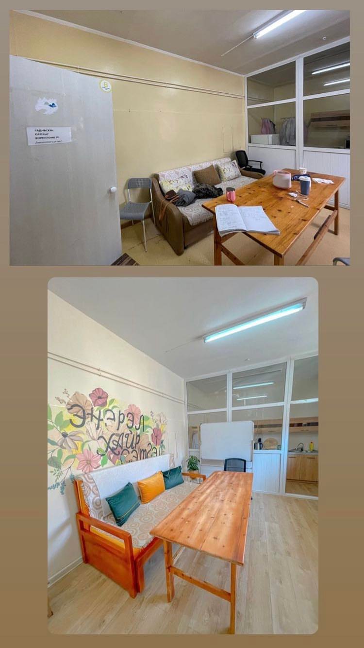 Хийж бүтээж буй зүйлсээсээ хамгийн том онцлууштай нь өнгөрсөн долоо хоногт Хавдар Судлалын Үндэсний Төвийн Хөнгөвчлөх тасаг буюу хавдрын эцсийн шатанд орсон эмчлэгдэх боломжгүй хүнд өвчтөнүүдийн хэвтдэг өрөө, тасгийн сувилагч нарын амрах өрөө, ажлаа хийдэг постыг нь өөрчилсөн. Харахад жижигхэн ажил юм шиг хэр нь миний хувьд асар их үнэ цэнтэй. Учир нь тухайн тасагт дөрвөн жилийн өмнө манай эмээ хэвтэж байсан. Хамгийн хайртай хүн минь эцсийн өдрүүддээ байсан газарт халуун дулаан, хайрыг түгээх боломж олдсон нь маш нандин үнэ цэнтэй. Энэхүү тасагт ажиллах боломжийг олгосон Ч.Ганжавхлан, биднийг дэмжсэн Долгорсүрэн эгч, ХСҮТ-н хамт олондоо баярлалаа. Долгорсүрэн эгч маань хайртай ээжээ хорт хавдар өвчнөөр алдаад удаагүй байсан ба энэ үедээ суварга бариулах бус ээжийнхээ ажиллаж байсан ХСҮТ, тэр дундаа хөнгөвчлөх тасагт жоохон ч гэсэн тав тух нэмэх юмсан гэсэн чин хүсэл тээсэн нь бидний энэхүү ажил ямар чухал болохыг дахин баталсан юм. Хорвоод ирэн, буцах нь хүний “жам”. Бид хичнээн хичээсэн ч яаж ч чадахгүй нь хатуу үнэн гэдгийг бид ажиллаж байх хугацаандаа хайртай хүмүүсээ тасагт алдан гашуудаж буй хүмүүсийн уйлах харууслаар дахин дахин мэдрэн эргээд өөртөө буй бүх л зүйлдээ талархаж амьдрахыг хэчнээн, даруугаар хийж бүтээх, хайрлах зорилгуудаа эргэн харсан чухал мөчүүд энд болсон.