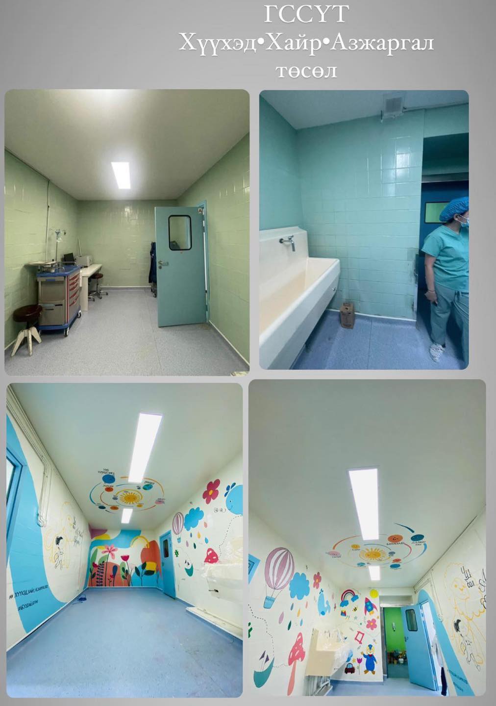 Гэмтлийн эмнэлэгт зуны улиралд осол гэмтлийн улмаас хагалгаанд орох хүүхдийн тоо нэмэгддэг. Судалгаагаар жилд 3000-4000 хүүхэд тэр мэс заслын өрөөнд хагалгаанд ордог юм билээ. Тэр хагалгааны өрөө завсрын хүйтэн тоннтой ногоон өнгийн ханатайгаас гадна энэ тэндээ цөмөрсөн, замаск нь гарч ирсэн байсан. Ийм өрөөнд ажиллаж байгаа ажилтнуудаас гадна хүүхдүүдийн сэтгэл санаанд их нөлөөлдөг талаар олон тохиолдолын талаар сонссон юм. Мэдээж энэ бүхнийг ганцаараа сэдэн, хийж гүйцэтгэх боломжгүй. Энэхүү “Хүүхэд-Хайр-Аз жаргал” нэртэй төслийн хүрээнд ГССҮТ-н удирдлагууд, эмч эмнэлгийн ажилтнууд, биднийг холбосон найз Ч.Ганжавхлан болон энэхүү ажлыг явуулахад гол дэмжлэг үзүүлсэн АНУ-д суугаа Өлзийхуяг, Дэлгэрцогт нарын гэр бүлүүд гээд маш олон итгэл, сэтгэл, хүч, хайр шингээн оролцсоныг онцлох хэрэгтэй. Эмнэлгийн зүгээс гэхэд л бүх хагалгааг өөр тасагт шилжүүлэн ачаалалаа ихэсгэн, сүүлийн үеийн хагалгааны камертай гэрэл суулгуулсан гээд зүгээр л нэг зураад өнгөрсөн ажил биш юм.