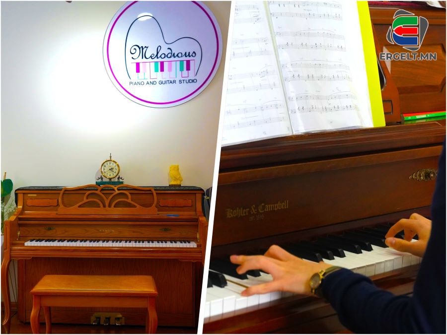 “Melodious” сургалтын төвд хөгжмийн эгшиг тасарч байсан тохиолдол үгүй бололтой. Учир нь биднийг амралтын өдөр очиход хөгжмийн өрөөнд хэн нэгэн бяцхан хөгжимчин хөнгөн, цовоо аяыг хичээнгүй гэгчин тоглож сонсогдоно. Түүний тоглож буй хэмнэл сэргэлэн бас энгийн. Тэр хааяа алдаа гаргах үедээ дахин эхнээс нь давтана. Ийм сонсголонтой хийгээд цовоо аясыг дагаж явсаар хөгжмийн өрөөнд орлоо. Чамин, эрхэмсэг байдлыг санагдуулам “Samick” төгөлдөр хуур, түүний зэрэгцээ налуулсан банзан гитарууд гээд хөгжмийн өрөөний эргэн тойрон, хаа нэгтээ дуулдах өнөөх бяцхан хөгжимчний аялгуутай зохицоно. Амралтын өдөр байсан учраас сургалтын төвийн эхний өрөөн дэх эзнээ хүлээсэн хөгжмийн зэмсгүүдэд нам гүм шингэсэн байлаа. Биднийг ороход хөгжмийн багш Д.Мөнхбаяр угтаж, сургалтын төвийн талаар товч танилцуулгыг хүргэсэн юм. “Мelodiоus” сургалтын төв нь үйл ажиллагаагаа эхлүүлээд таван жил болж байгаа бөгөөд төгөлдөр хуур болон гитар гэх мэт бусад төрлийн хөгжмийн зэмсгүүдийг мэргэжлийн багш нарын бүрэлдэхүүнтэйгээр анхан шатнаас нь заадаг байна. Одоогийн байдлаар сургалтын төвд 50 гаруй хүүхэд хичээллэж байгаа аж. Түүнчлэн хүүхэд суралцахад хамгийн тав тухтай орчинг бүрдүүлж, хичээлийн байр, хөгжмийн зэмсгийн хүрэлцээ нь суралцагчдад таатай нөхцөлийг бий болгожээ. Энэ удаагийн сургалтын ээлжинд Д.Мөнхбаяр болон Ц.Энэрэл багш өглөөний 9 цагаас 16 цаг хүртэл хүүхдүүдийг хүлээн авч, үйл ажиллагаагаа үргэлжлүүлж байв. Ингэх зуур орж ирсэн цагаас л анхаарал татахын хэрээр бага, багаар ойртсоор байсан хөгжимчний ая, багшийнхаа зааварыг хүлээж хэсэг намжих шиг болов.