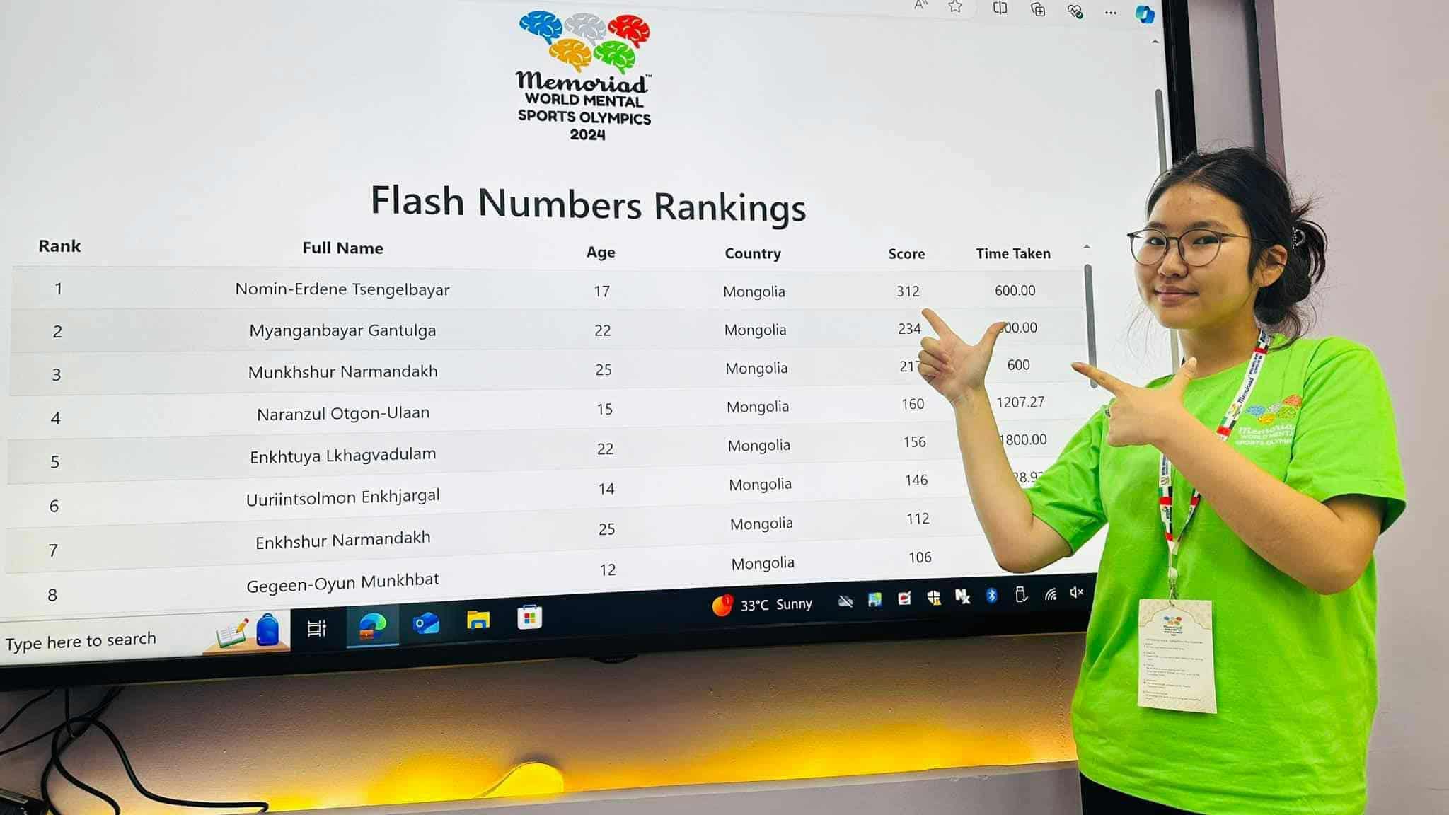 -Маш хурдтай аливааг цээжлэх чадвартай болсон нь гоё санагддаг. Тэмцээнд явахаар хоёр сарын чөлөө хичээлээсээ авдаг болохоор буцаж ирээд дорхноо цээжлээд хичээлдээ хоцрогдолгүй хийж чаддаг. Мөн гадаадын орноор аялж, тэдний соёлтой танилцах өвөрмөц санагддаг. Хамгийн гоё нь тэмцээндээ сайн орчхоод дэлгүүр хэсэж өөрийгөө шагнах байдаг даа.