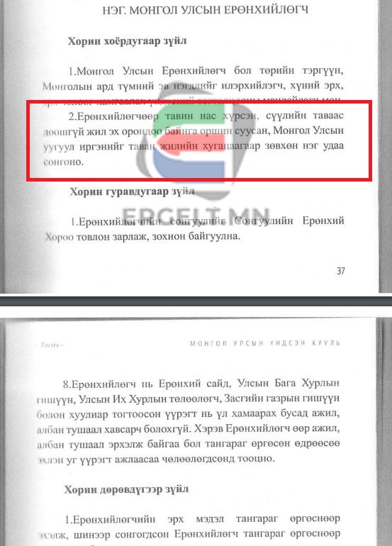 ЕРӨНХИЙЛӨГЧИЙН ТАВАН ЖИЛЭЭР НЭГ УДАА ПАРЛАМЕНТААС СОНГОДОГ БОЛНО