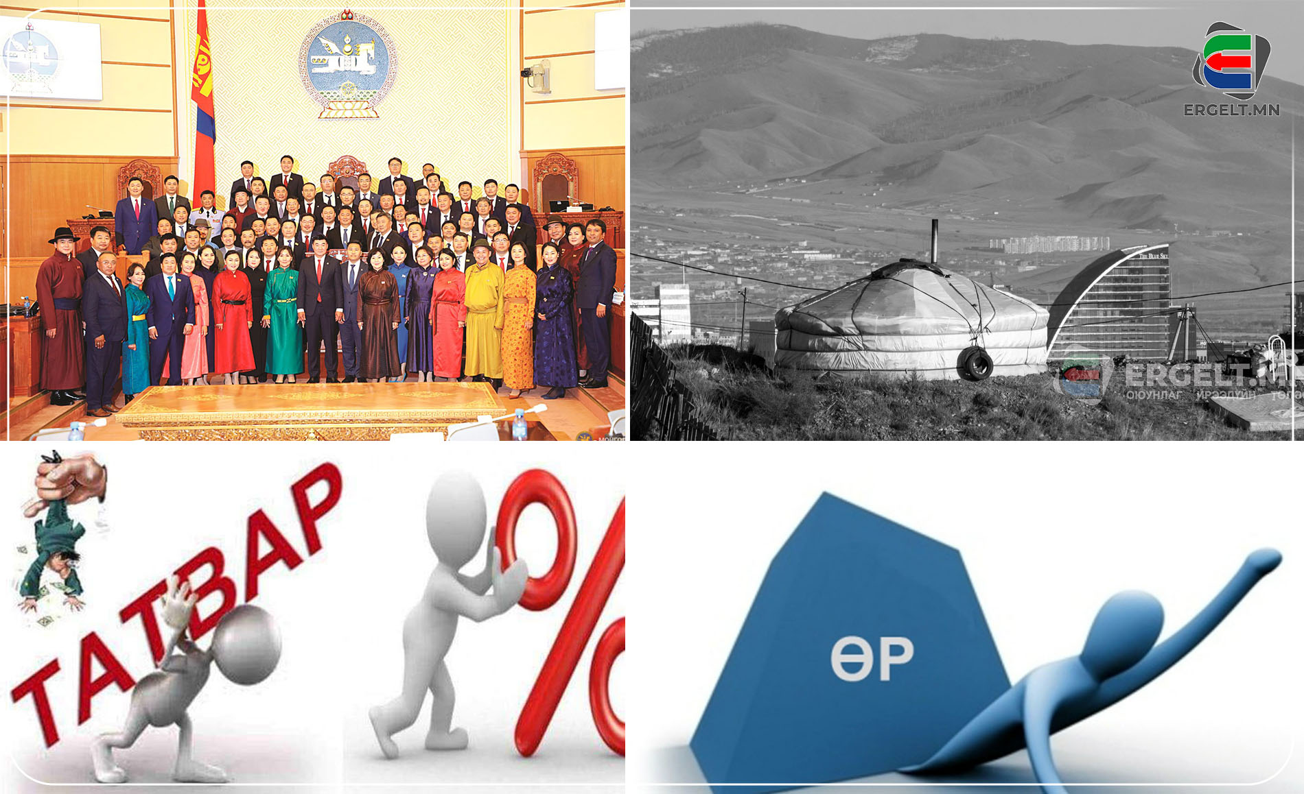 Тодруулбал, өнгөрсөн хугацаанд Хувь хүний орлогын албан татварын хувь хэмжээнд босго тогтоож 10, 25 болгон нэмэгдүүлэх, хадгаламжийн хүүгийн орлогоос татвар авах, Онцгой албан татварын хувь хэмжээг нэмэх, суудлын автомашинд үйлдвэрлэсэн оноос нь хамааруулж татварыг нь 3-15 хувиар нэмэгдүүлэх, тансаг хэрэглээний, хөдөлгүүрийн багтаамж өндөртэй суудлын автомашинд ногдуулдаг Онцгой албан татварыг нэмэгдүүлэх, 150 метр квадрат болон түүнээс дээш талбай бүхий орон сууцанд үл хөдлөх хөрөнгийн албан татварыг 50 хувь нэмэгдүүлэх, тэтгэвэр тогтоох насыг нэмэгдүүлэх, тэтгэврийн даатгалын шимтгэлийн хувь хэмжээг таван пунктээр нэмэгдүүлэх, Нийгмийн даатгалын шимтгэлийг хоёр хувиар нэмэгдүүлэх, Хотын татварыг хоёр хувиар нэмэх шийдвэр гаргачихаад сууж байна.