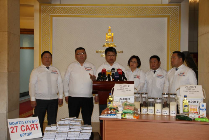 УИХ-ын чуулганы өнөөдрийн хуралдаанаар Mөрөөс мөнгөний бодлогын баримтлах үндсэн чиглэл, ирэх оны төсвийн төслийг хэлэлцсэн. Энэ үеэр УИХ дахь АН-ын бүлгийн гишүүд өнгөрсөн дөрвөн жил өргөн хэрэглээний бараа бүтээгдэхүүний үнэ хэрхэн нэмэгдсэнийг харуулсан акцыг Төрийн ордонд хийлээ. Тэд өнгөрсөн дөрвөн жилд ам.долларын ханш төгрөгийн эсрэг 40 хувиар чангарч, энэ хэрээр төгрөг үнэгүйдэж бараа бүтээгдэхүүний үнэ өссөн гэдгийг хэлсэн. Ардчилсан намын бүлгийн гишүүд энэ талаараа мэдээлэл хийлээ.