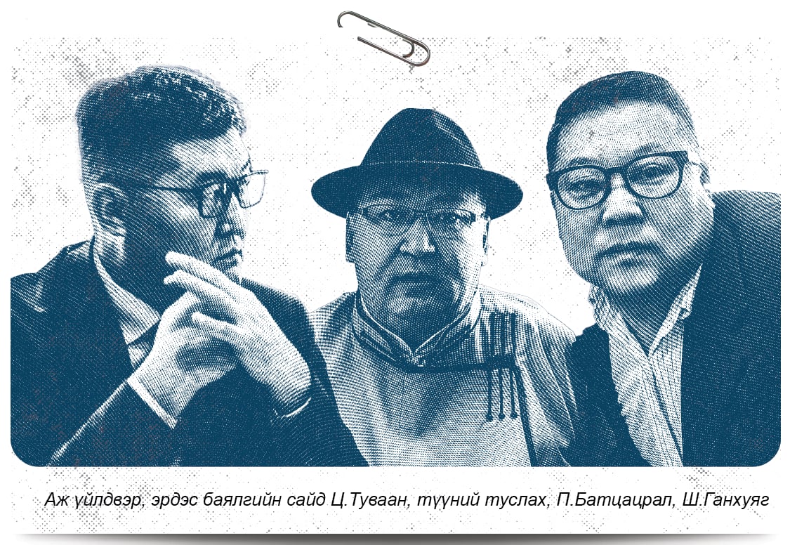 Нэгтгэж харвал, Аж үйлдвэр, эрдэс баялгийн сайд Ц.Тувааны туслах Ш.Ганхуяг, П.Батцацрал хоёроос уул уурхайн салбар бүхэлдээ хараат болчихлоо. Уул уурхайн ордтой болъё гэвэл, орд газартаа олборлолтоо явуулъя гэвэл эхлээд Ц.Тувааны туслах Ш.Ганхуягийн, дараа нь Ц.Тувааны туслах Б.Батцацралын гарын үсэг хэрэгтэй гэсэн үг.