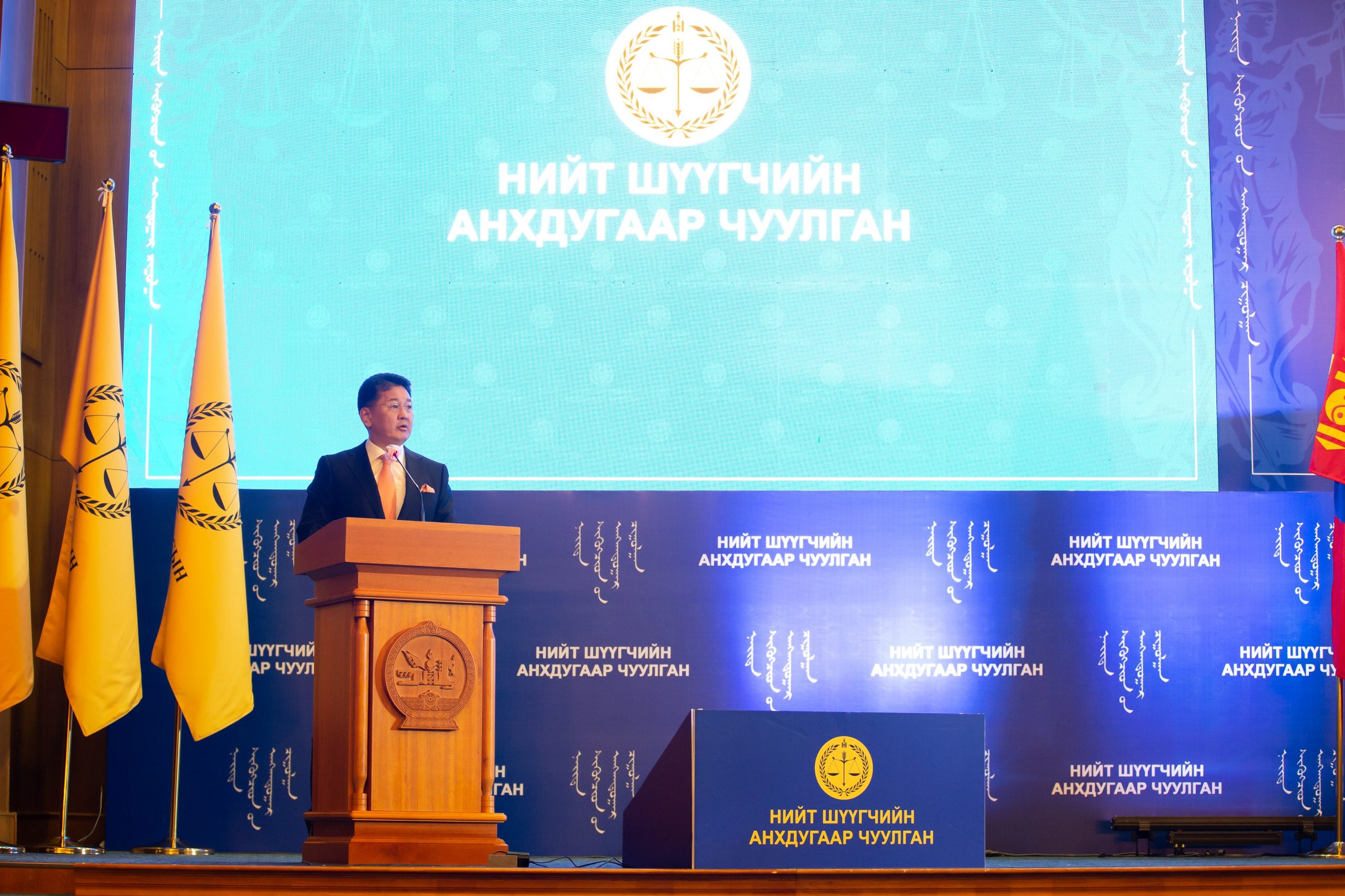 Тэгвэл өнөөдөр Монгол Улсын шүүх эрх мэдлийг хэрэгжүүлж буй нийт шүүгч энэ хүндэтгэлийн танхимд цуглан Үндсэн хуулийн шинэ байгууллагаа эмхлэн байгуулж буй нь тохиолдлын хэрэг биш юм.