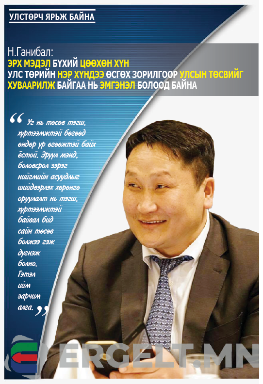 | Н.Ганибал: Эрх мэдэл бүхий цөөхөн хүн улс төрийн нэр хүндээ өсгөх зорилгоор улсын төсвийг хуваарилж байгаа нь эмгэнэл болоод байна |