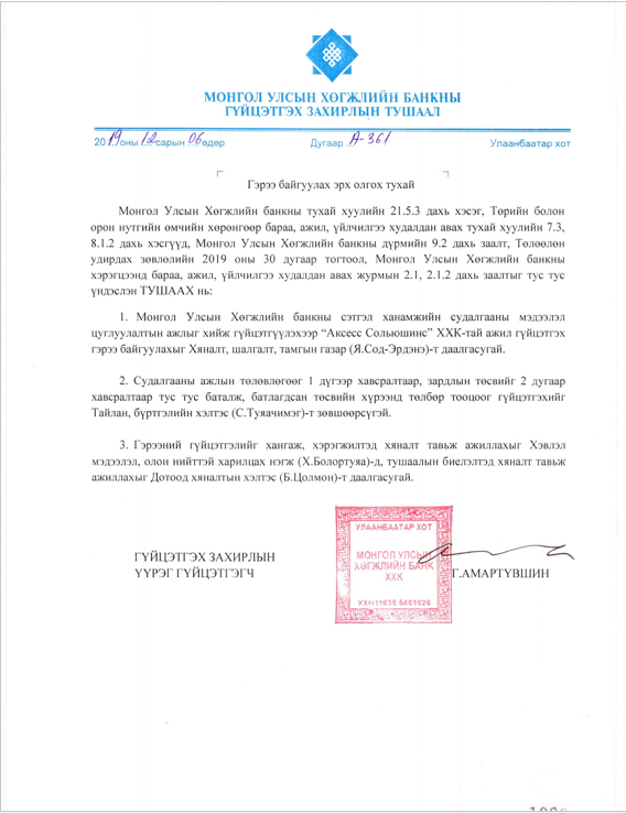 Сонирхуулахад, Б.Болор-Эрдэнийн "Аксесс сольюшинс" ХХК нь Монгол Улсын Хөгжлийн банктай тэргүүтэй олон байгууллагуудтай гэрээлж байжээ.