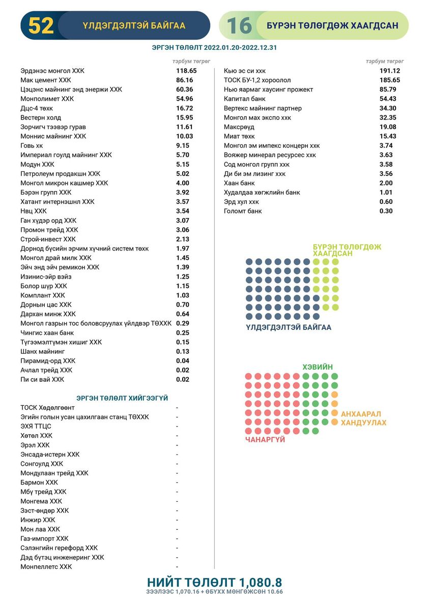 Гэхдээ шүгэл дуугараад бүтэн 350 хоног өнгөрч байхад нүдэн балай, чихэн дүлийн аж ахуйн нэгжүүд ч байна. Өнөөдрийг хүртэл зээлээ төлөөгүй, хаагаагүй, буцаалт хийгээгүй газруудыг дурдвал, ТОСК хөдөлгөөнт, Эгийн голын усан цахилгаан станц ТӨХХК, ЭХЯ ТТЦС, “ХӨТӨЛ” ХХК, “ЭРЭЛ” ХХК, “МОН ЛАА” ХХК, “МОНГЕМА” ХХК, “ИНЖИР” ХХК, “ЗЭСТ-ӨНДӨР” ХХК, “СОНГОУЛД” ХХК, “МБҮ ТРЕЙД” ХХК, “ГАЗ-ИМПОРТ” ХХК ЗЭРЭГ АЖ АХУЙН НЭГЖ НЭГ Ч ТӨГРӨГИЙН ЗЭЭЛ ТӨЛӨӨГҮЙ БАЙНА.