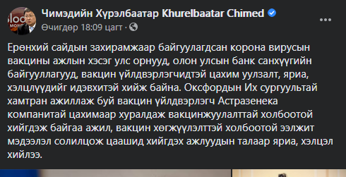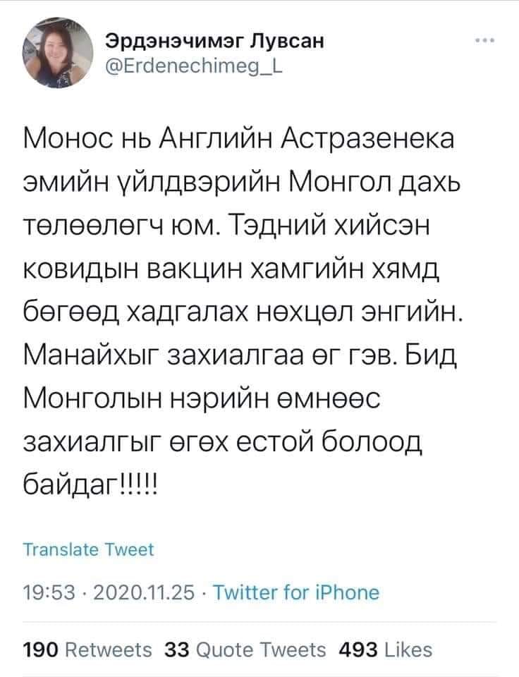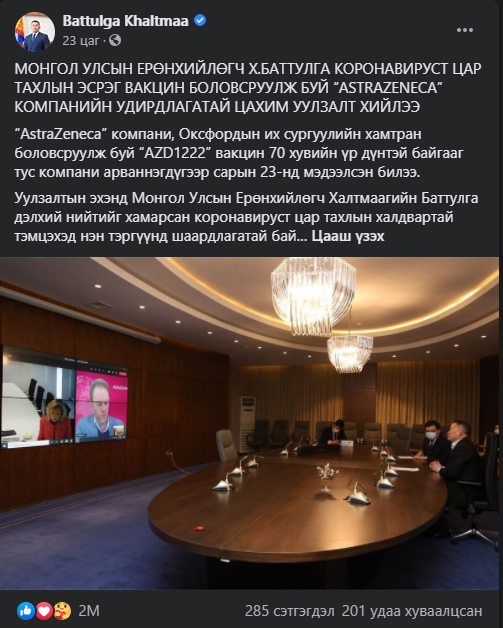 Тухайлбал, Модерна 95 хувь, Спутник-V 92 хувь, Пфизер 90 хувь, Астразенека 70 хувь хамгаална гэсэн судалгааг тус бүрдээ танилцуулаад буй. Тэд бүгд эмнэлзүйн зөвшөөрлөө хүлээж байгаа. Товчхондоо, энэ вакцин нь хямд үнэтэй, хадгалахад хялбар гэдгээрээ бусад вакцинаас ялгарч байгаа. Тэгэхээр манай улс зөвхөн хямд үнэтэй гэдгээр нь “Астразенека”компанийн вакциныг оруулж ирэх гээд байгаа юм биш биз.
