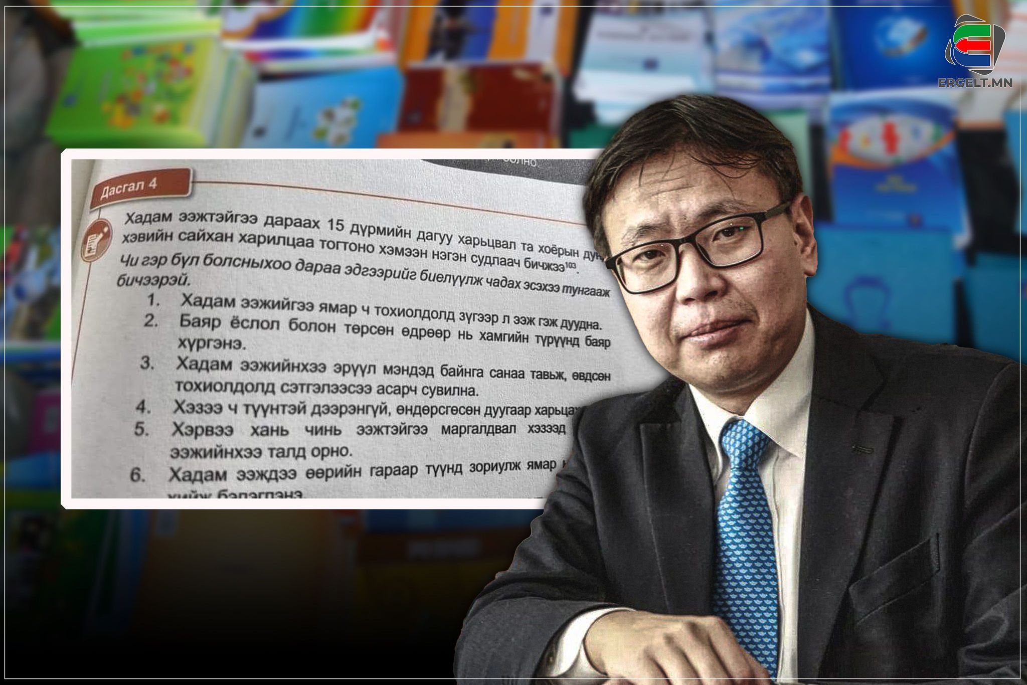 Хүүхэд, залуусыг боловсролгүйгээр төсөөлөхийн аргагүй. Амьдралын баталгаа бол боловсрол, түүгээр дамжуулж олж авсан мэдлэг, чадвар тэднийг ирээдүйд хөтлөх зам. Тиймээс сурагчийн сурах бичиг алдаагүй байх нь хамгийн чухал. Гэтэл сурах бичигт орж буй дасгал ажлуудыг ямар ч шалгуургүйгээр цахим сайтаас хуулбарлан тавьж байгаа нь ирээдүйгээ хорлож байгаа хэрэг биш гэж үү. Үүнээс гадна 2014 онд нэгдүгээр ангийн “Иргэний боловсрол” хичээлийн ном үг, үсэг, хэл найруулга, агуулга нь авах юмгүй байсныг 2016 онд шүүхээр шийдвэрлэсэн байдаг. Тухайлбал, тухайн сурах бичгийг цаашид ашиглах боломжгүй, шинээр зохио гэсэн дүгнэлт гаргаж байжээ. Хамгийн эмгэнэлтэй нь иргэний боловсролын номыг сургалтад ашиглахаас өмнө буюу 2013 онд сургуулиудад туршаад, дараа оныхоо долдугаар сард нэгдүгээр ангийн сурагчдын тоогоор хэвлүүлжээ. 2014-2015, 2015-2016, 2016-2017 оны хичээлийн жилд 180 мянга орчмыг хувилсан гэсэн үг.