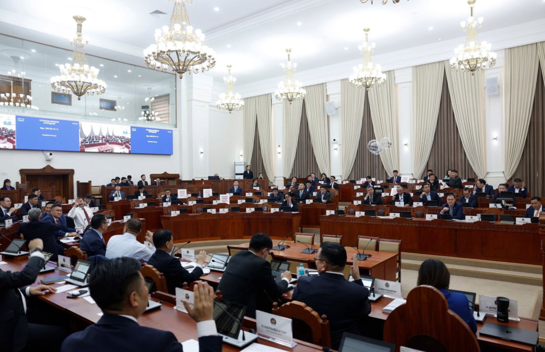 Монгол Улсын 2025 оны улсын төсвийг УИХ-ын гишүүдийн гарыг өргүүлж баталлаа. Сүүлийн өдрүүдэд УИХ-ын гишүүдийн дунд хамгийн их маргаан дагуулж, батлагдахгүй унах дээрээ тулаад байсан 2025 оны төсвийн төсөл "кноп ажиллахгүй байгаа" гэх нэр дор гишүүдийн гарыг өргүүлэн тоолсноор 69 гишүүн дэмжив.
