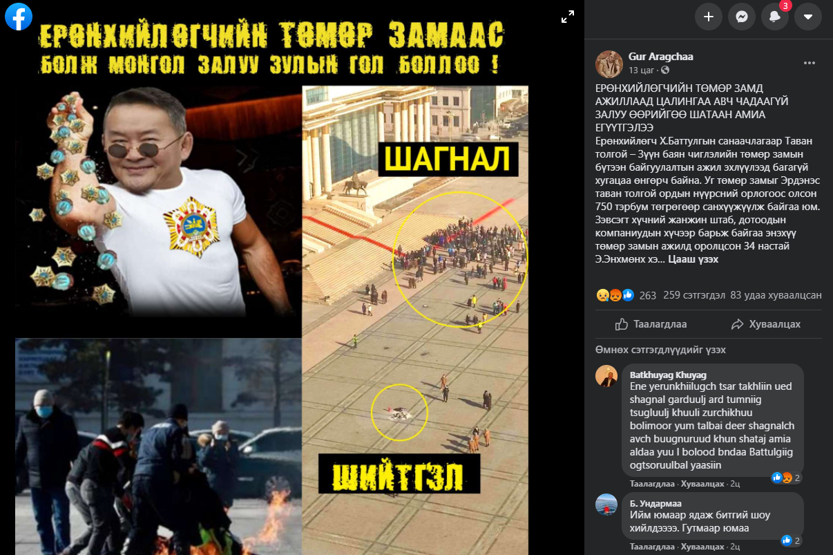 Энэ эргэлзээ зүй ёсных учраас ТЕГ, ЦЕГ-аас хамтарсан баг гарч, талийгаач Э Төв талбайд очихоосоо өмнө хэнтэй уулзсан, хэнтэй утсаар ярьсан, өөр дээрээ асгасан бензинийг хаанаас авсан, гэрээсээ Төв талбай хүртэл хэнээс хүргүүлсэн гэх мэдээллүүдийг нарийвчлан шалгаж, нягталж байгаа гэх.