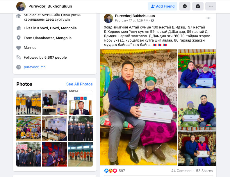 Учир нь, УИХ-ын гишүүн Б.Пүрэвдорж өөрийн цахим хуудастаа “Ховд аймгийн Алтай, Үенч, зарим өндөр настнуудтай золголоо” хэмээн хөгшидтэй хууч хөөрсөн мэдээлэл нийтэлж, олныг шуугиулав. Эрх мэдэлтэй гишүүнийг Ховд аймгаар зочлох үеэр тус аймгаас орох, гарах хөдөлгөөнийг хязгаарласан байжээ. Тодруулбал, Ховд аймгийн Засаг дарга 2021 оны хоёрдугаар сарын 8-ны өдрийн А/62 тоот захирамж гарч, сум орон нутгаас гарах, орох хөдөлгөөн нийтийн болон хувийн тээврийн хэрэгсэлийг зогсоож, “тэг” зогсолт хийсэн өдөр байлаа.
